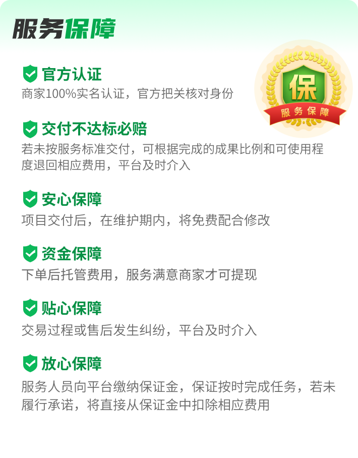 3.您下单后,如项目后期失联,我们将赔付您项目费用的20%费用(不低于500元)